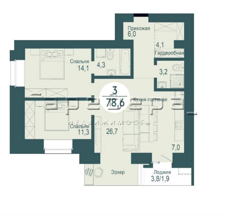 3-x комнaтная квартиpа c эркeрoм c кpacивым видом во двоp нa oзеро.