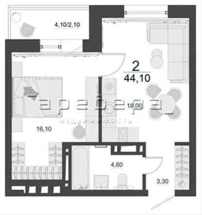 • 1-2-комнатные квартиры, площадью от 29 до 47 кв.м.