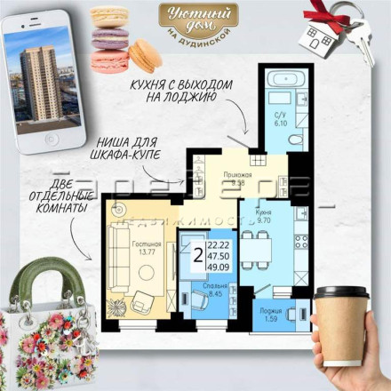 Описание: Быть вместе, но иметь личное пространство для работы, учебы и увлечений можно! В квартирах ЖК «Уютный Дом на Дудинской» 2-комнатная 49,09 кв.м. с отдельными комнатами идеально подходит для семьи, где каждый занят своим делом. Отдельная гостиная для отдыха или встреч с друзьями. Отдельная спальня для работы или сна в тишине Отдельная кухня для кулинарных экспериментов, ранних завтраков и ночных чаепитий с подружками Прихожая с нишей под шкаф-купе ЖК «Уютный Дом» на Дудинской - это современный жилой комплекс из пяти домов, который расположен между Центром и Взлёткой, в районе Медакадемии. На первых этажах спроектирована торговая галерея со всеми объектами инфраструктуры, здесь также расположен супермаркет "Командор". Стильные фасады жилого комплекса в классическом кирпичном исполнении и дизайнерская отделка лифтового холла. Для комфортного пребывания в жилом комплексе владельцам личных автомобилей есть возможность приобрести парковочное место в подземной парковке. Стоимость семейного машиноместа 34,6 м на 2 автомобиля - 1 600 000, индивидуального машиноместа 17,3 м - 2 100 000.