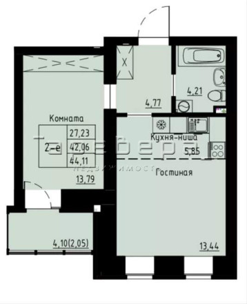 Общая площадь квартиры с учетом балкона - 44.11кв.м.
