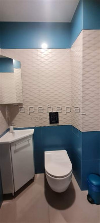 При продаже остается современная кухня с техникой и встроенные шкафы.