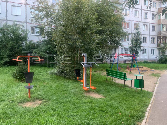 В уютном зеленом дворе расположена детская площадка. Так же, на территории двора располагаются две парковочные зоны: бесплатная и платная.