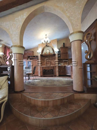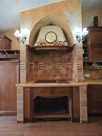 Уникальная планировка и дизайн в просторной гостиной-кухне 90 кв.м. с 5-метровыми мансардными потолками. Дизайн интерьера в замковом стиле с фресками ручной работы и мебелью из массива натурального дерева со встроенной техника премиум-класса. Отдельная зона с грилем и мощной вытяжкой. Центром притяжения является камин с живым огнем, это большая редкость для квартир.