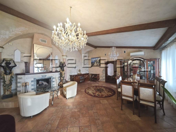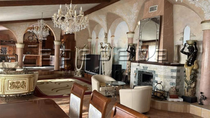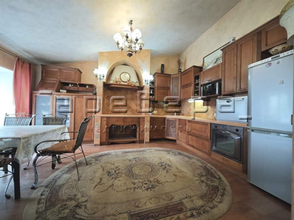 Уникальная планировка и дизайн в просторной гостиной-кухне 90 кв.м. с 5-метровыми мансардными потолками. Дизайн интерьера сделан в замковом стиле с фресками ручной работы и мебелью из массива натурального дерева со встроенной техникой премиум-класса. Отдельная зона с грилем и мощной вытяжкой позволит вамлегко приготовить вкусные шашлыки.