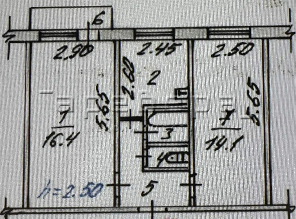 Квартира требует ремонта. Общая площадь - 44,8 м2; жилая - 30,5 м2, кухня - 6,5 м2.