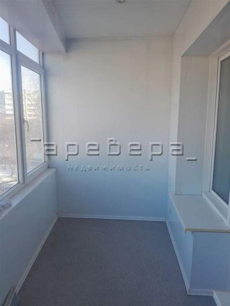 Лоджия утеплена: на полу линолеум, стены обшиты панелями, установлены стеклопакеты.