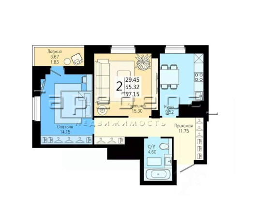 Описание: Уютная двухкомнатная квартира с видом на закатную и рассветную стороны
