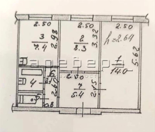 Этаж от подъезда отделен железной дверью. На площадке 3 квартиры.