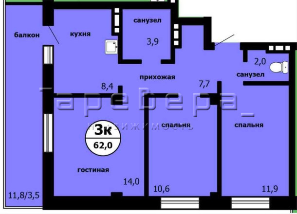 Две спальни — 11,6 м? и 11,9 м?. Обе изолированные.