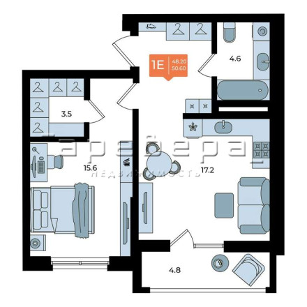 Премиальная евро-двушка 50,6 м: пространство для жизни без границ