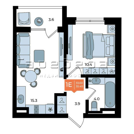 Компактная евро-двушка (34,8 м) с отдельной спальней