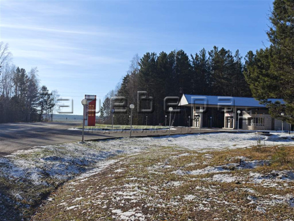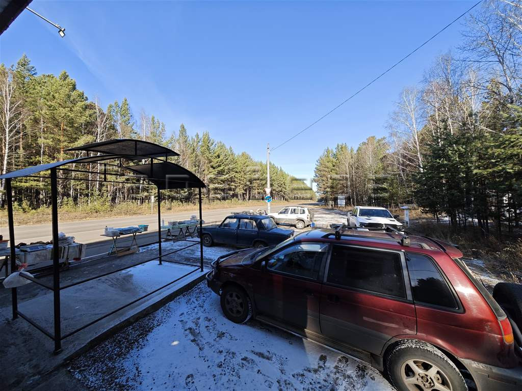 На противоположной стороне находится АЗС. Место очень проходное, люди приезжают с Красноярска чтобы провести время на свежем воздухе, а жители деревни здесь предлагают ягоды, соленья, варенья, вкусные домашние заготовки.