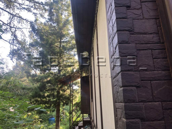 Придомовая территория: На ровном участке правильной формы наряду с хвойными деревьями имеются плодовые, ягодные и декоративные кустарники, многолетние цветы и небольшой цветущий пруд. Для удобства парковки и хранения инвентаря есть металлический гараж, для накопления воды - большая емкость 4 куб.м.