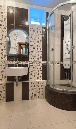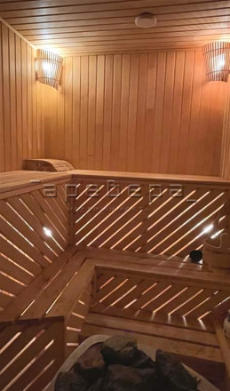 Все коммуникации центральные: вода, канализация, отопление. В доме три этажа (цоколь, 1 и 2 этажи) и мансардный этаж. В цоколе баня с бассейном, на мансардном этаже спортзал и рабочий кабинет.