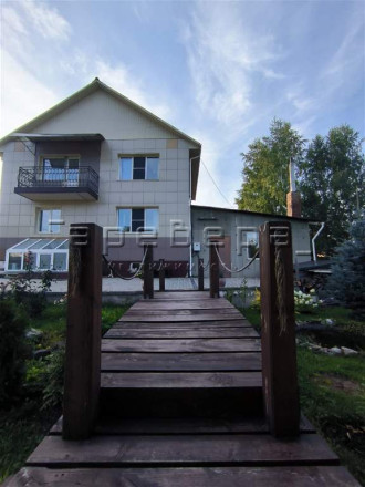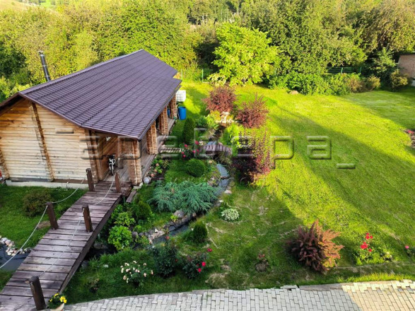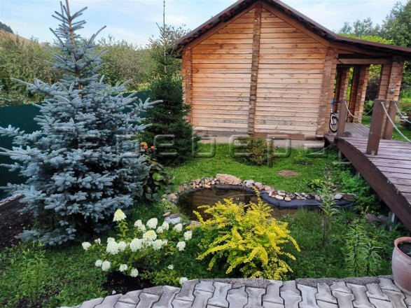 Ландшафтный дизайн участка. Ухоженный сад и небольшой огород (15,6 сот). Здесь растут деревья-хранители, журчат пруды с камнями с Байкала и Египта, цветут розы. За участком есть выход на небольшой лесной участок (3 сотки) и ручей.