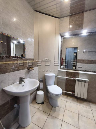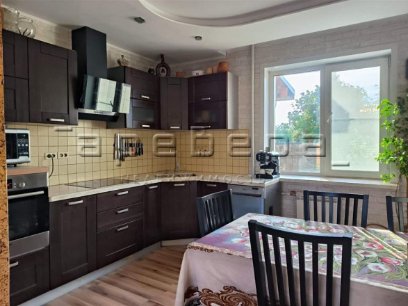В доме выполнен хороший ремонт. Окна ПВХ, на стенах — качественные обои, на полу ламинат, в санузлах кафель. Теплые полы в санузле на первом этаже и прачечной в цоколе. Новым собственникам остается кухонный гарнитур с дубовыми фасадами, встроенная техника, встроенный шкаф на первом этаже, мебель в кабинете (кроме кресел), детская кровать и гардеробные.