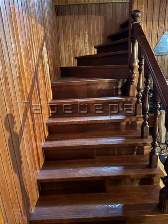 На втором этаже: гостиная с действующим камином и две просторные спальни. Лестница на второй этаж выполнена из лиственницы.