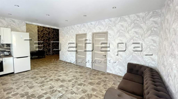 - Просторная гостиная с объединённой кухней — идеальное место для семейных вечеров и приёма гостей.