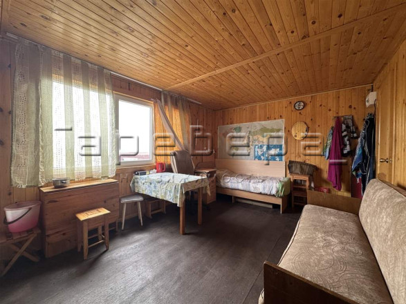 - дом из сендвич-панелей с печью, состоящий из комнаты и веранды.