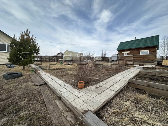 Участок весь день освещен солнцем, снежный покров сходит рано. В ягоднике 3 вида малины, красная и черная смородина, крыжовник, черешня, черемуха, черноплодная рябина, ирга. Три семиметровые грядки клубники (крупных сортов и 2хлетней посадки). На участке растут березы, сосны, ели. Есть большие газоны.